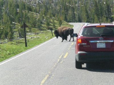 Die Bisons sind zuweilen ein Verkehrshindernis - vor allem, wenn jeder anhält, sobald ein Tier auftaucht.