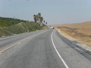 ansonsten sind wir an diesem Tag nur gefahren - mit interessanten Eindruecken: rechts Trockenheit, links ueppige (bewaesserte) Orangenplantage.